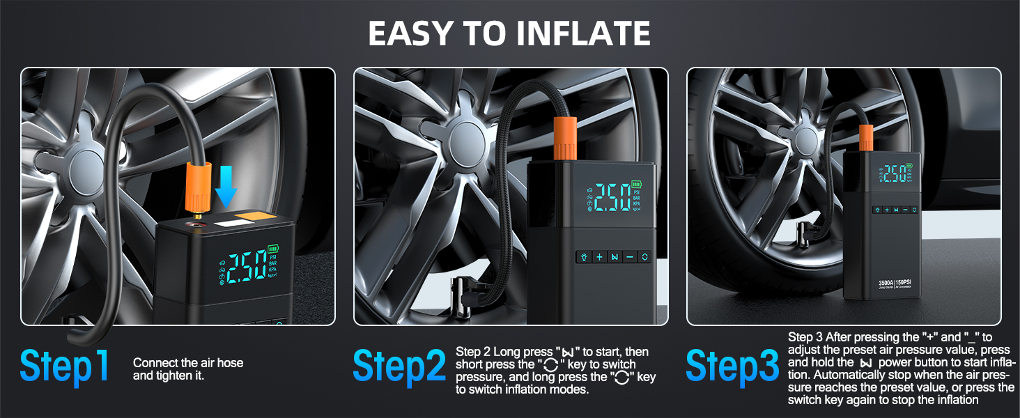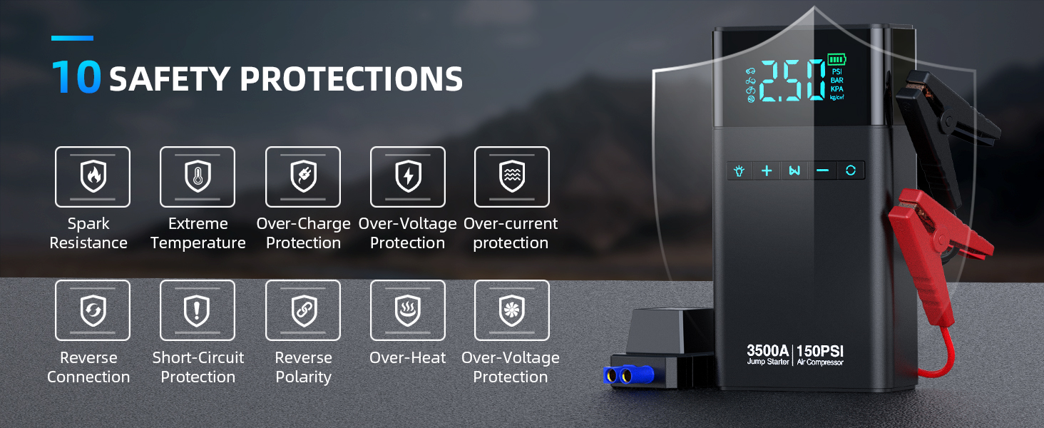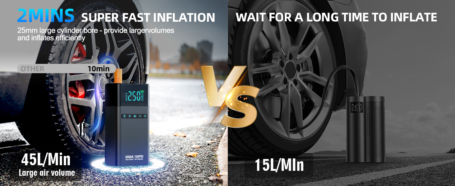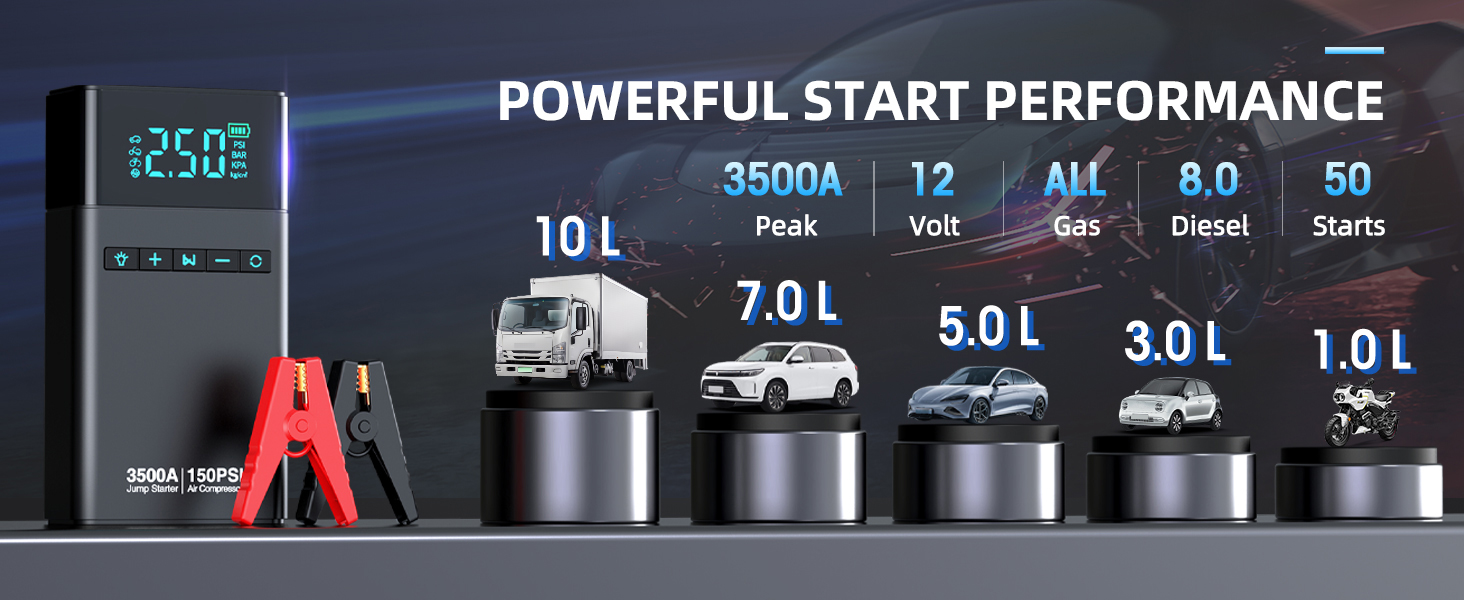 便携式智能汽车充气机轮胎泵12000mah电池与跳线起动器150psi12v汽车充气泵和跳线起动器