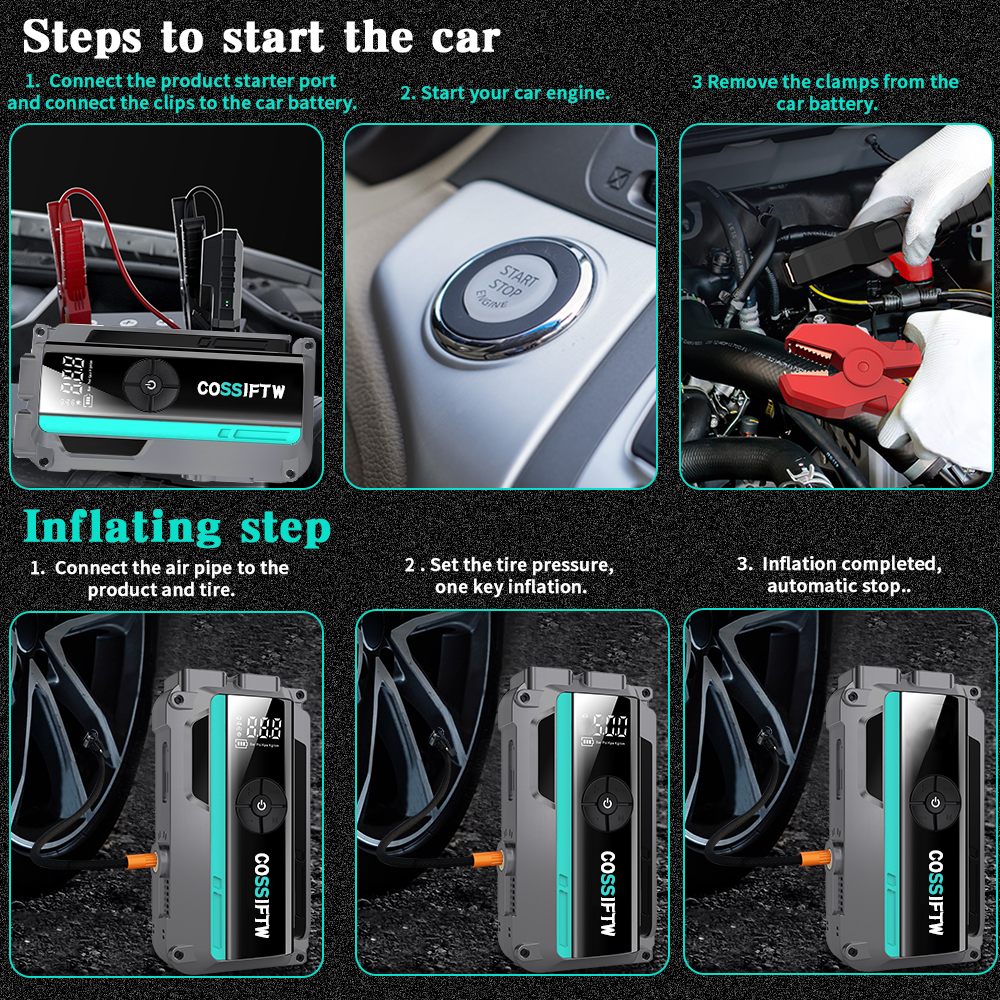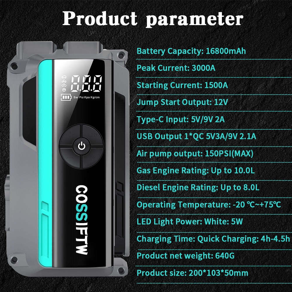 16800mah高容量汽车跳跃起动器12v便携式应急电池助推器与空气泵&智能LED