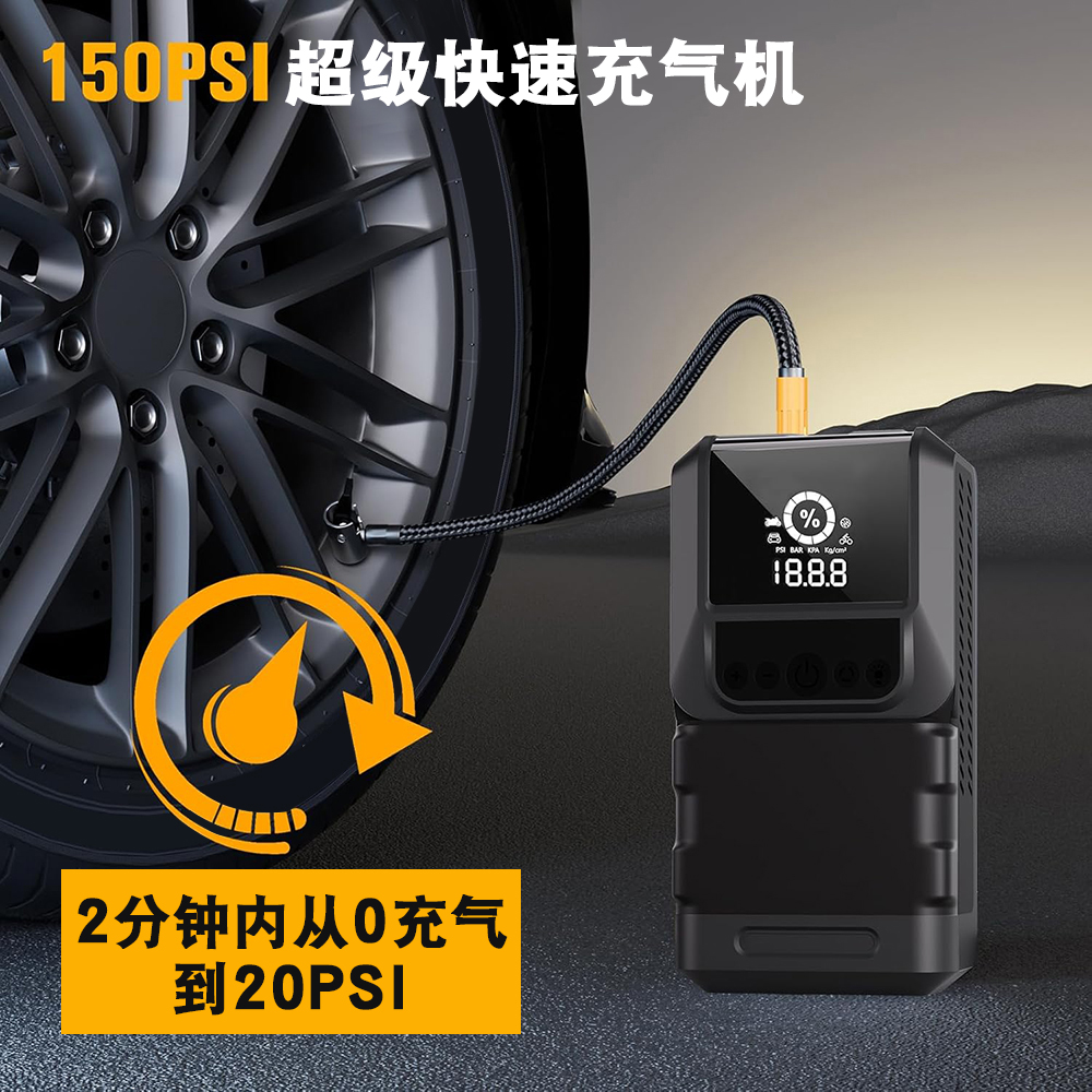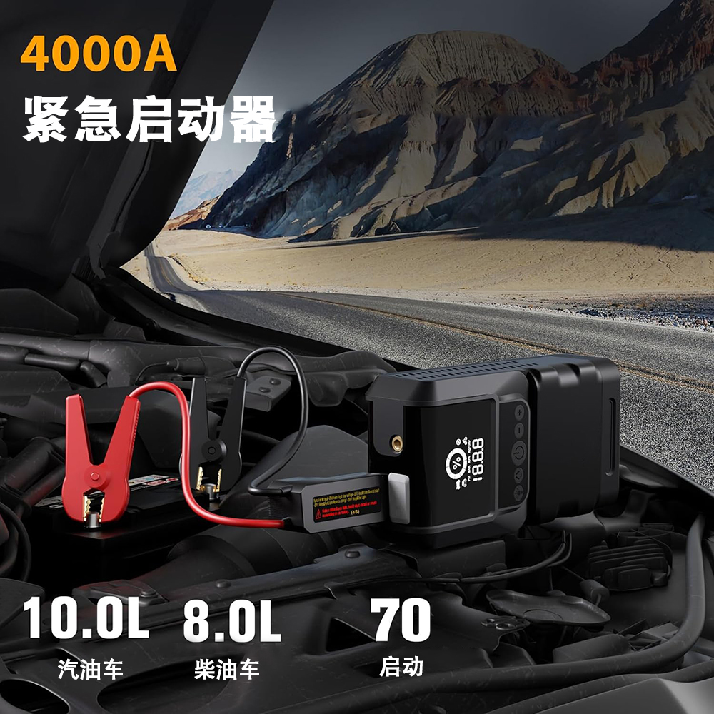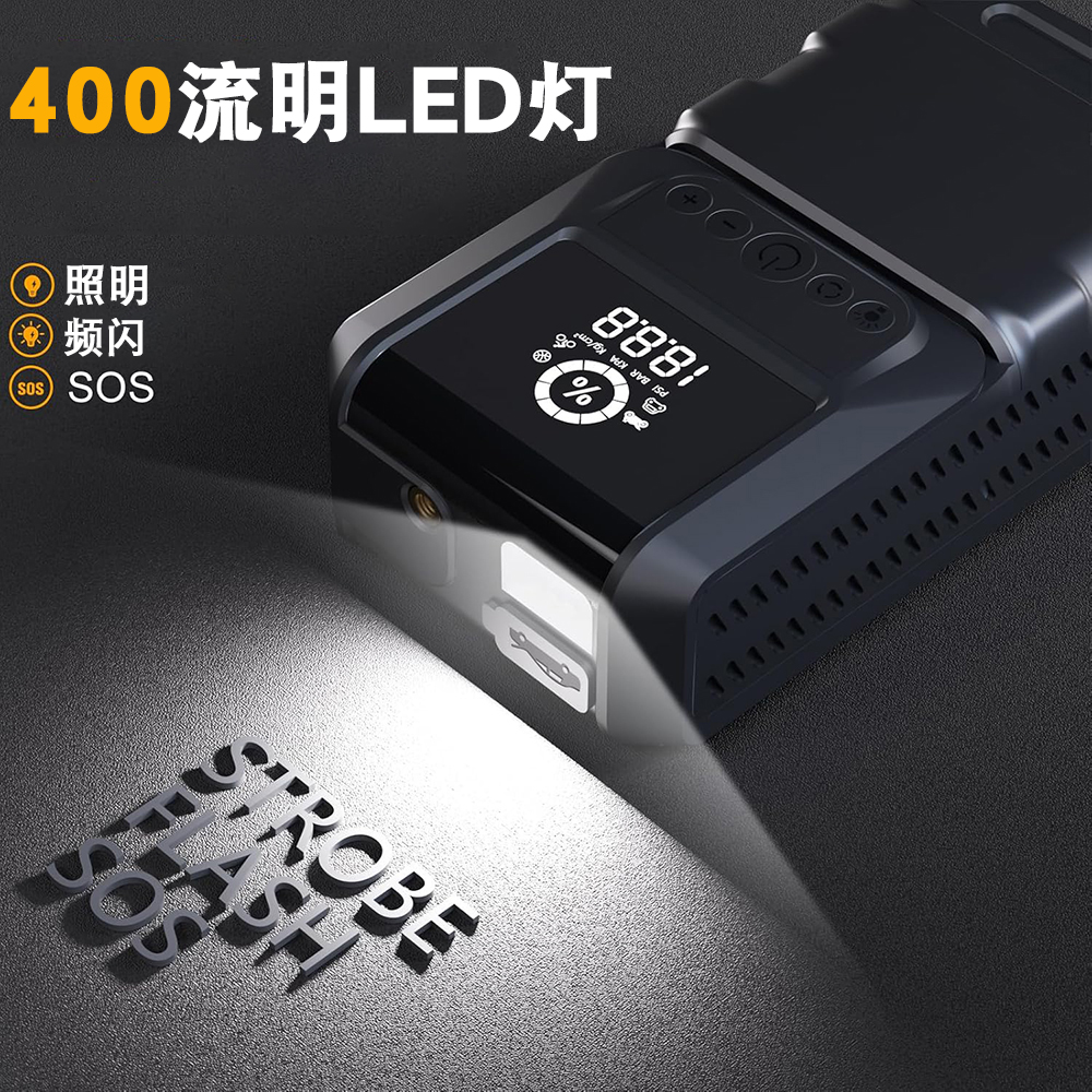 无线6000mah轮胎空气压缩机智能钳2000A汽车电池跳起动机移动电源