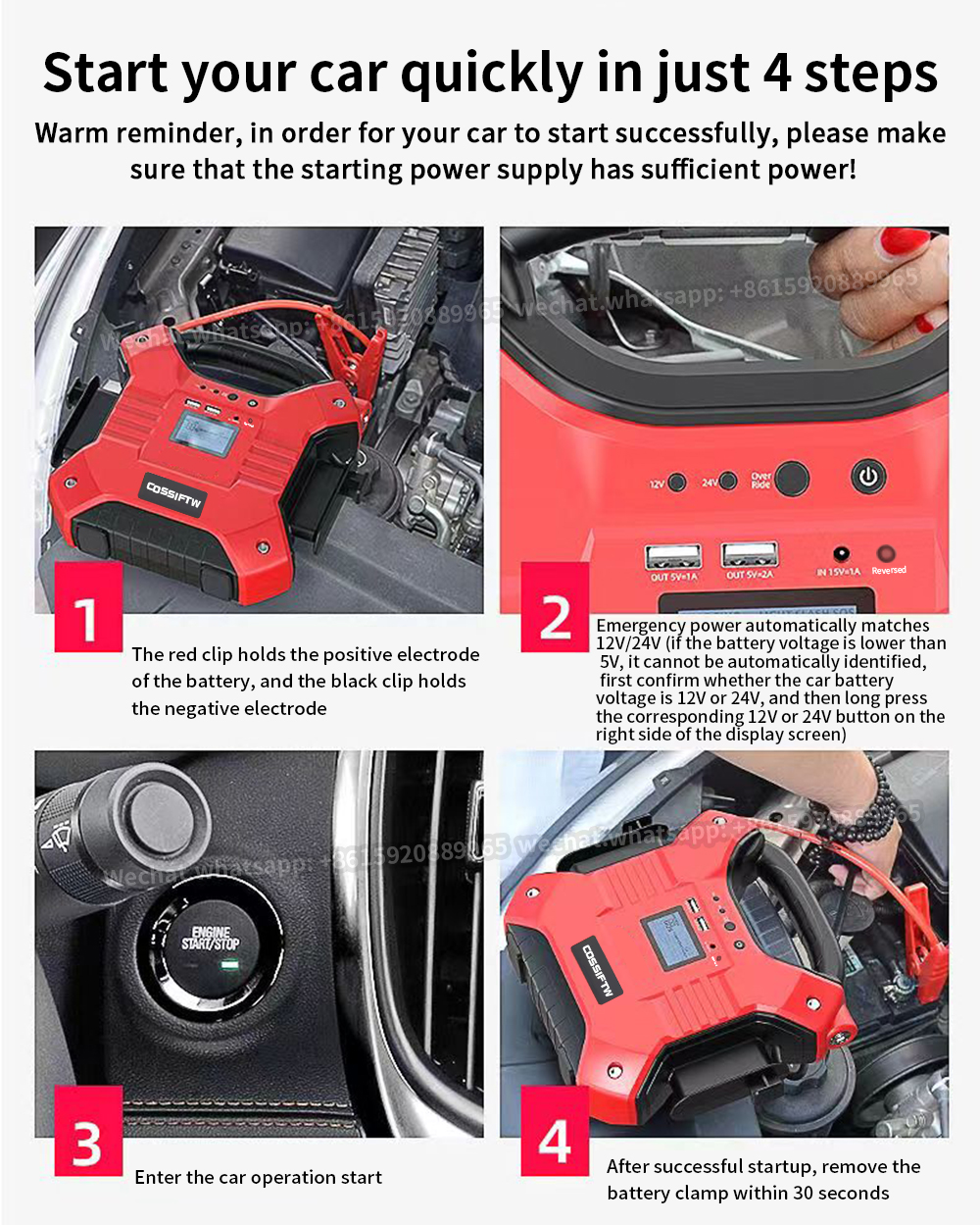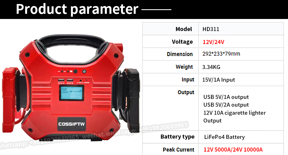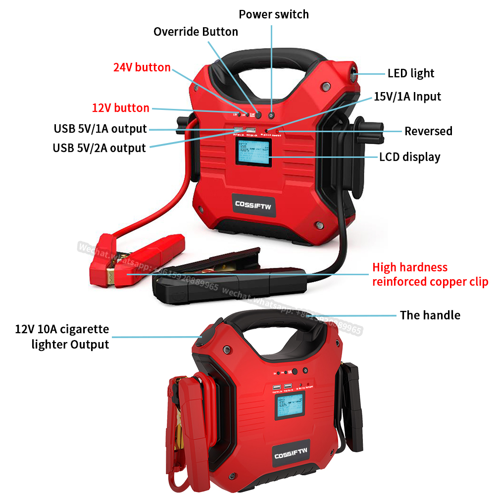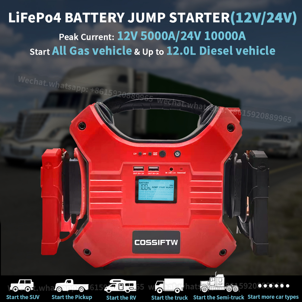 10000a LiFePO4跳跃起动器-12v/24v35000mah重型车辆及卡车用高功率电池助推器