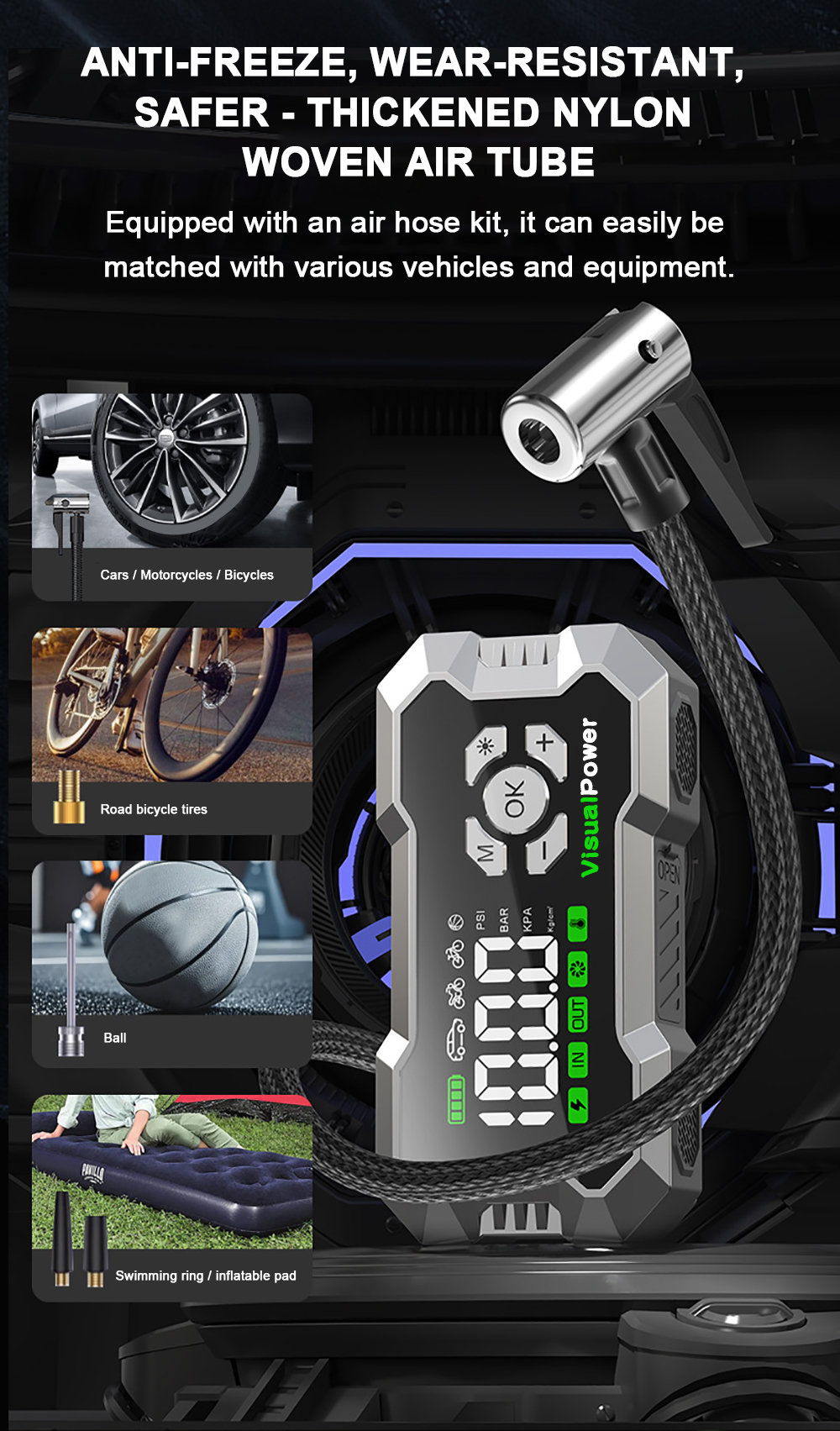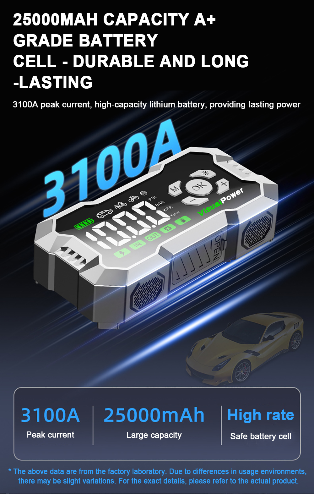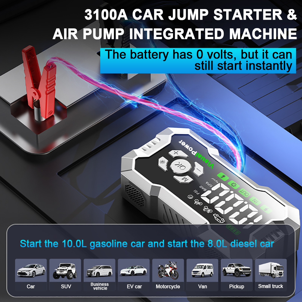 工厂批发5000a应急车套件12v汽车跳跃起动器与空气泵和21800mah大液晶屏热销设计