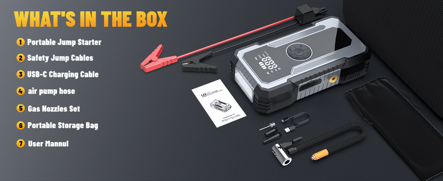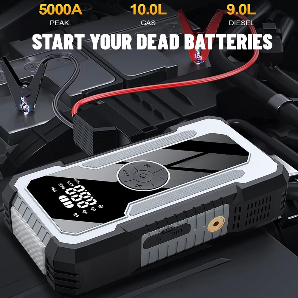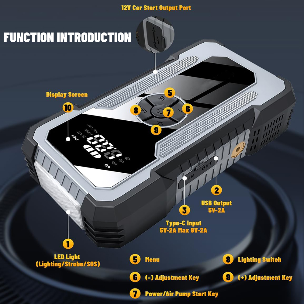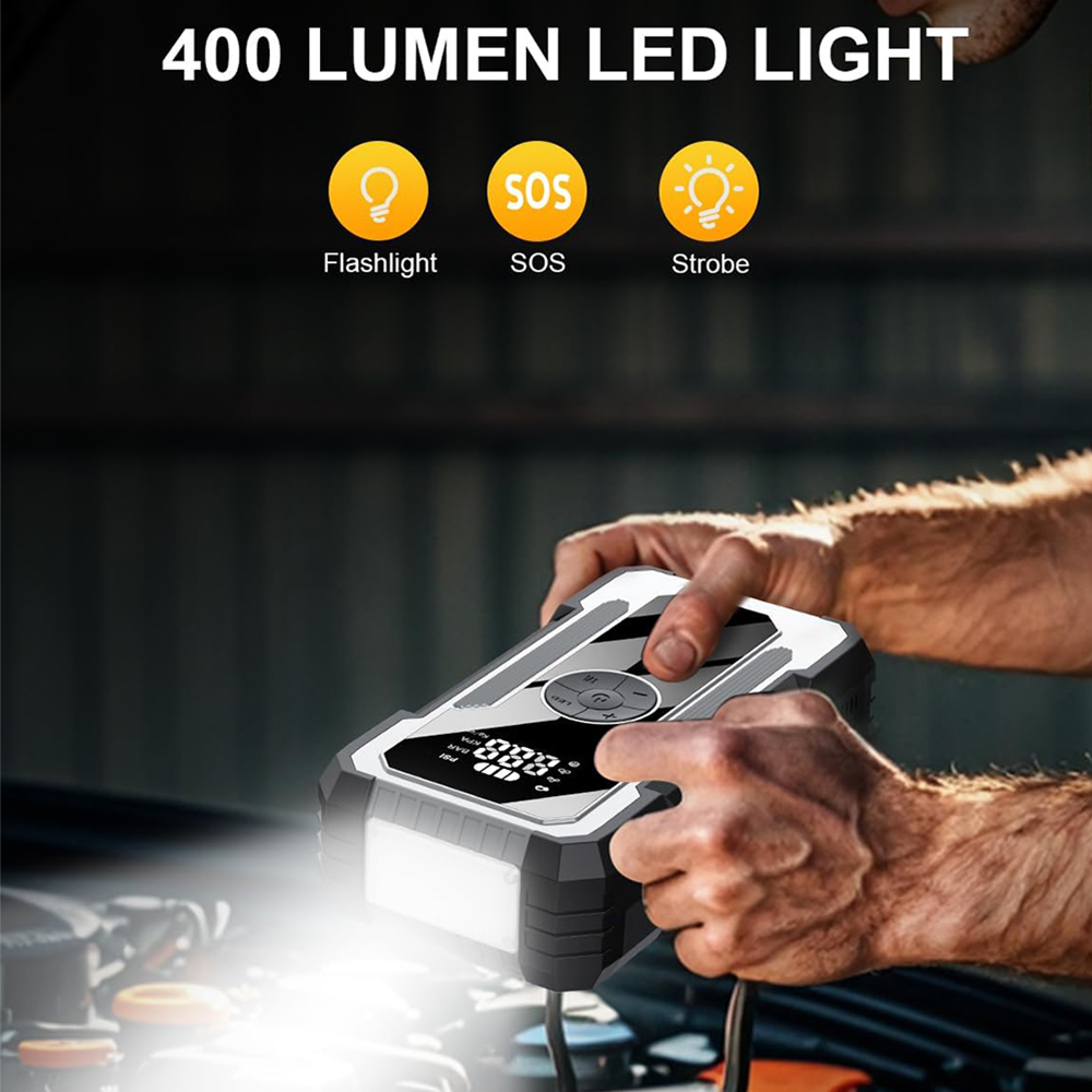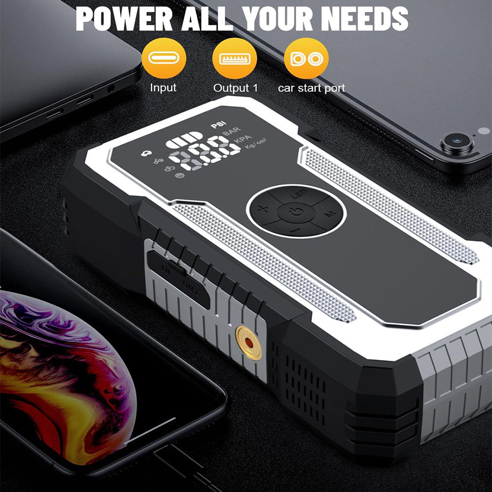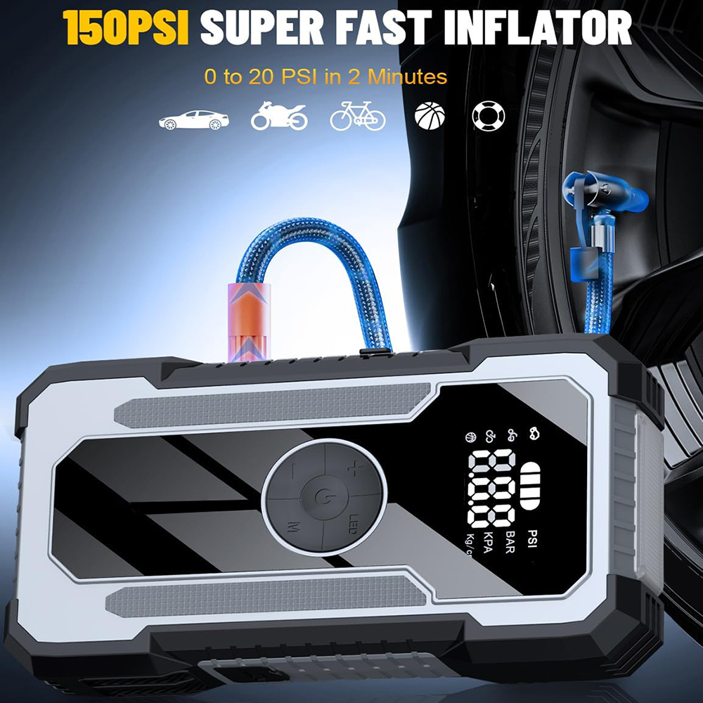 便携式电动无线汽车空气压缩机电动轮胎充气机21800MAH150psi与汽车跳跃启动功能的EVA袋