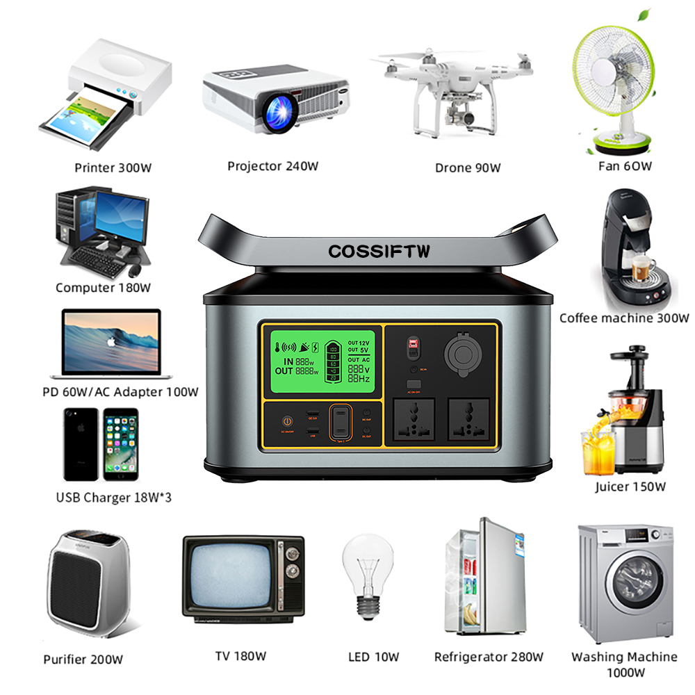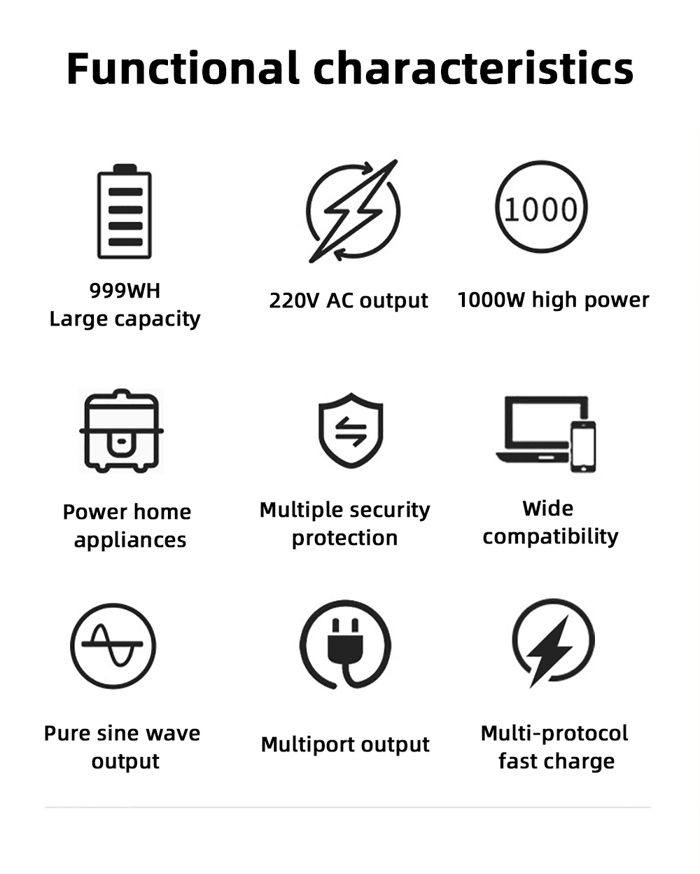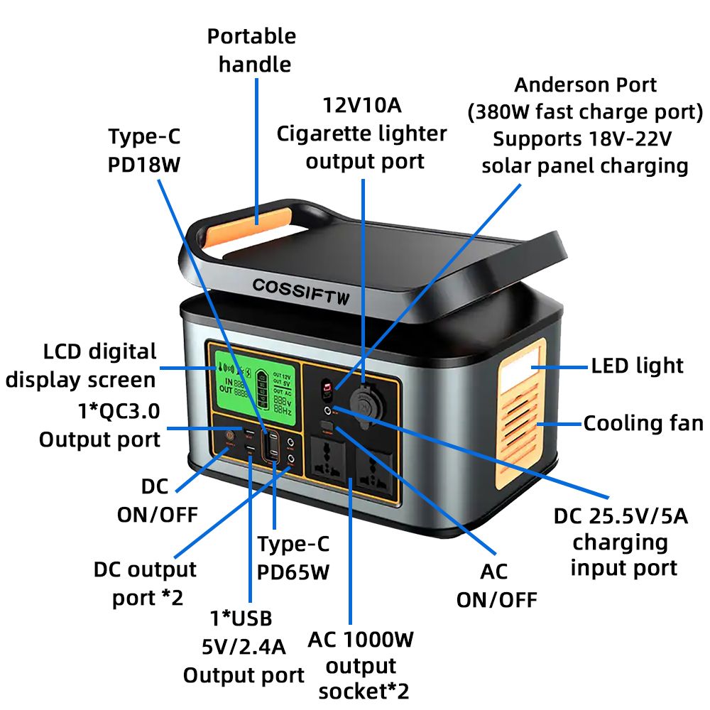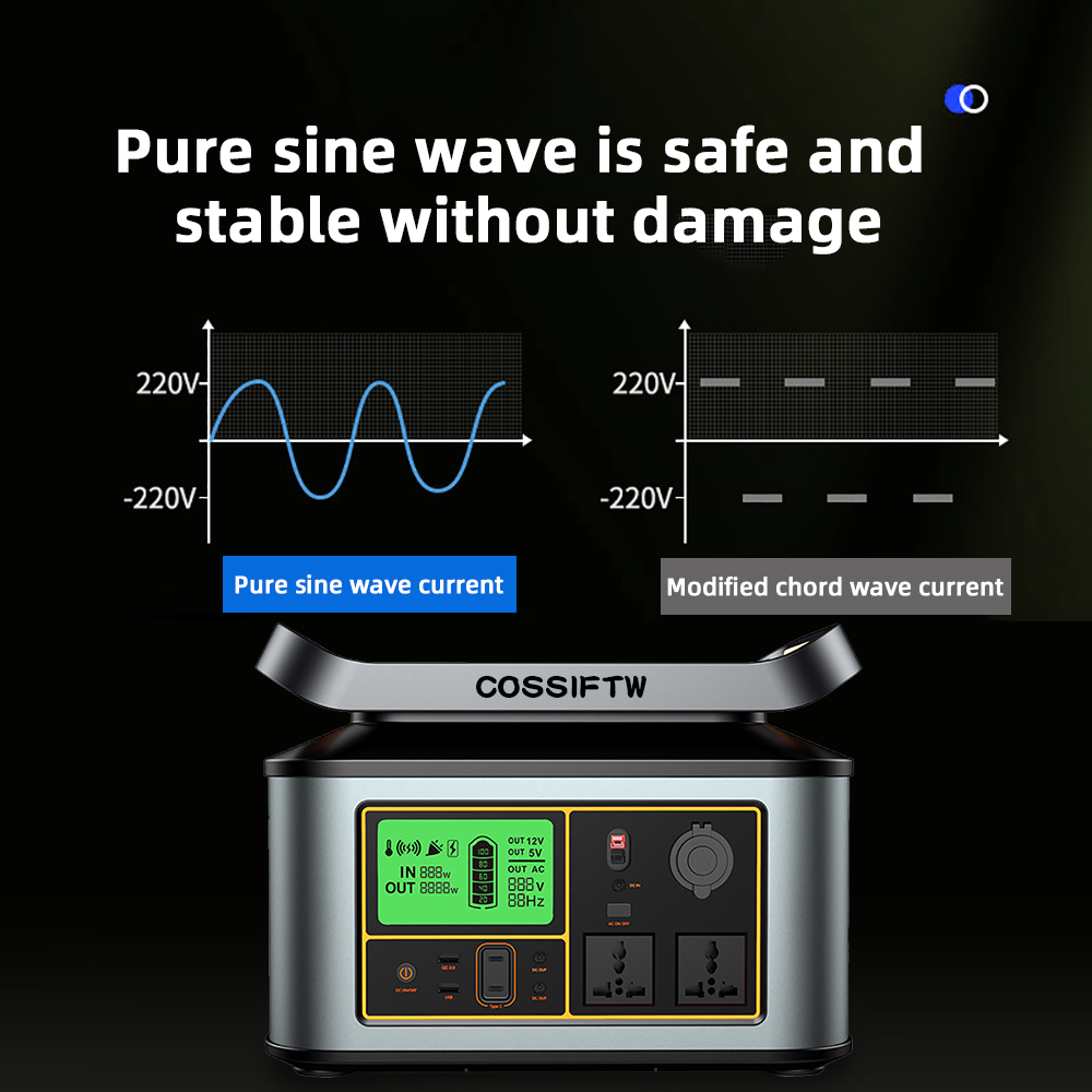 1000w便携式露营发电站太阳能发电机逆变器纯正弦波外置电池车源,用于户外活动