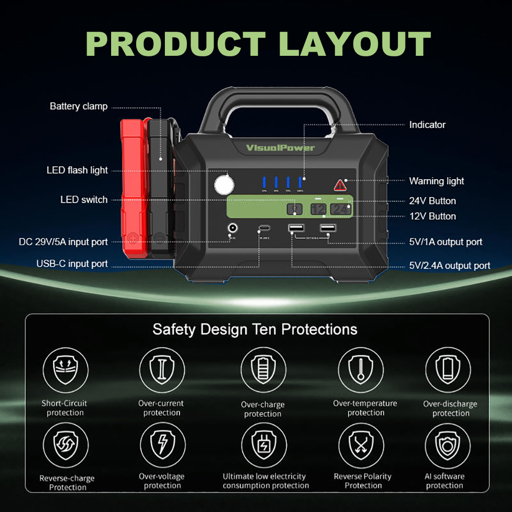 24伏电池助推器跳跃起动器组与12v重型卡车半和大拖拉机