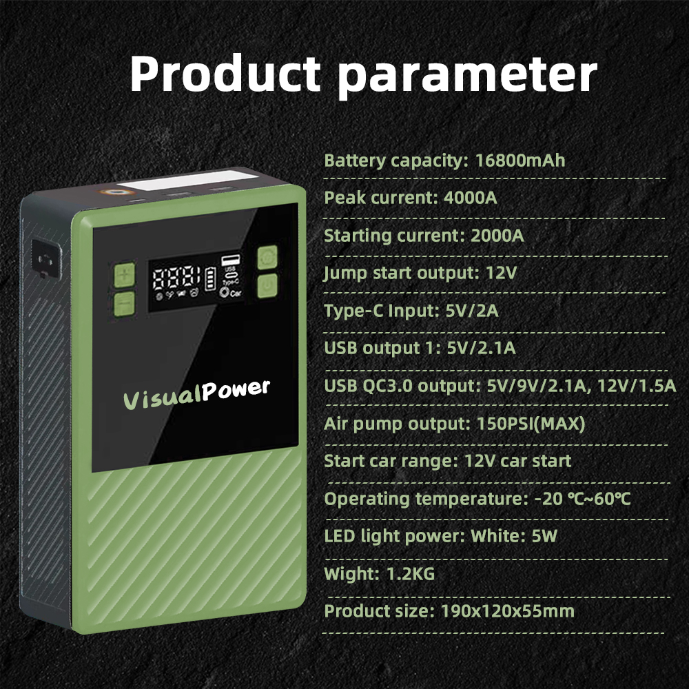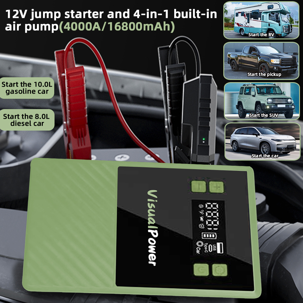 新的4000a跳跃起动器和气泵空气压缩机16800mAh150PSI12v汽车