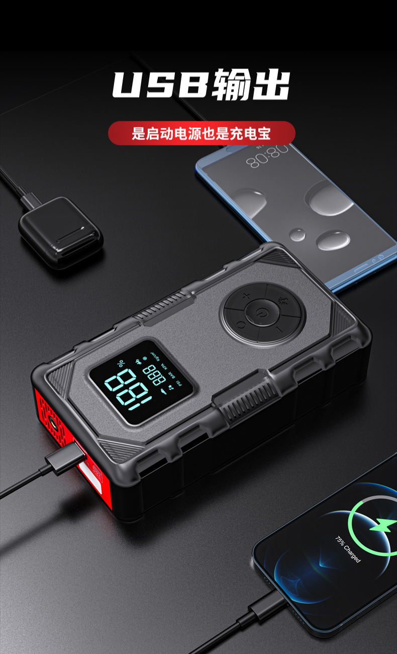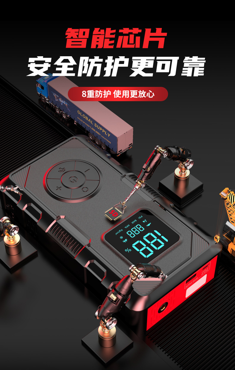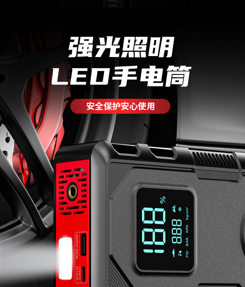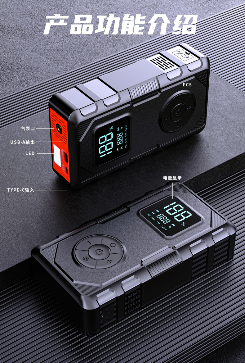 车载充气泵双缸应急启动电源一体机智能无线充气泵多功能搭电宝