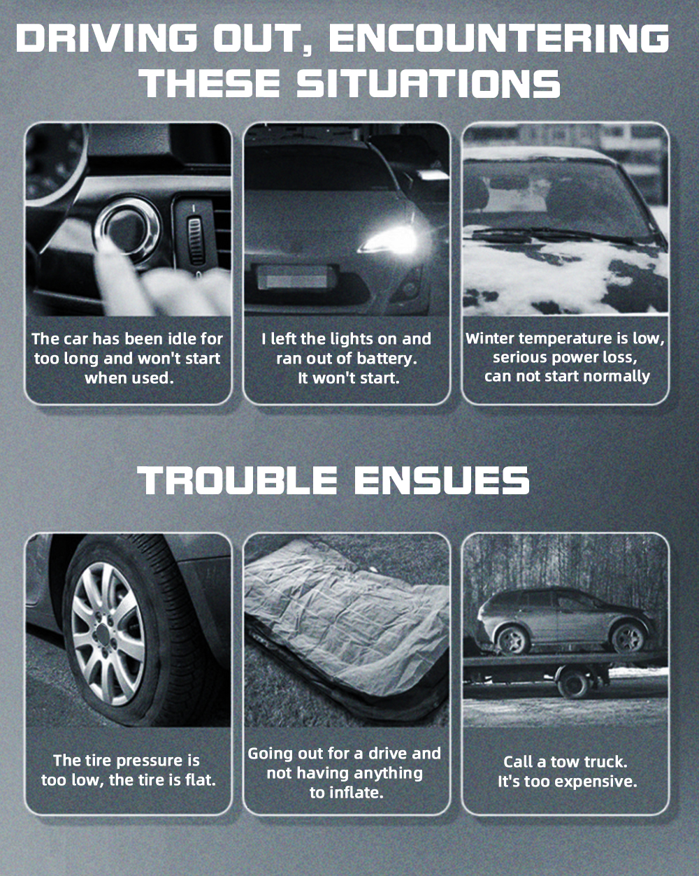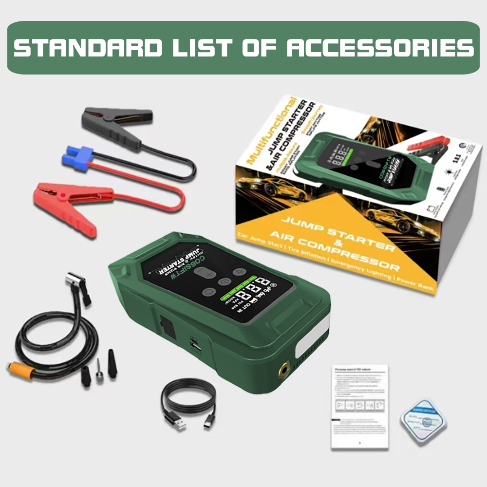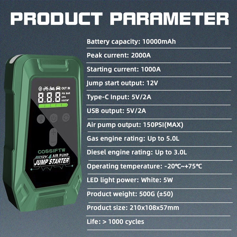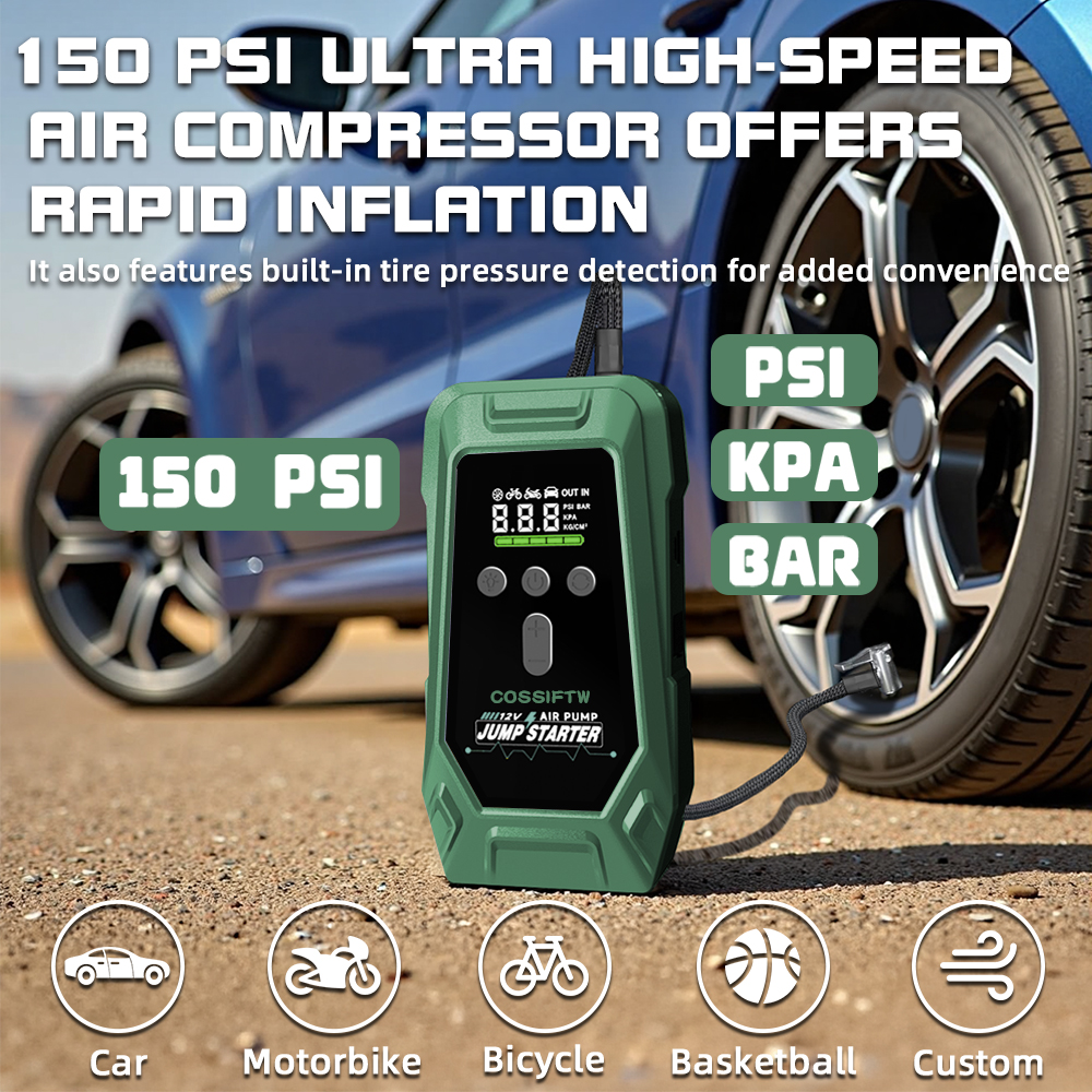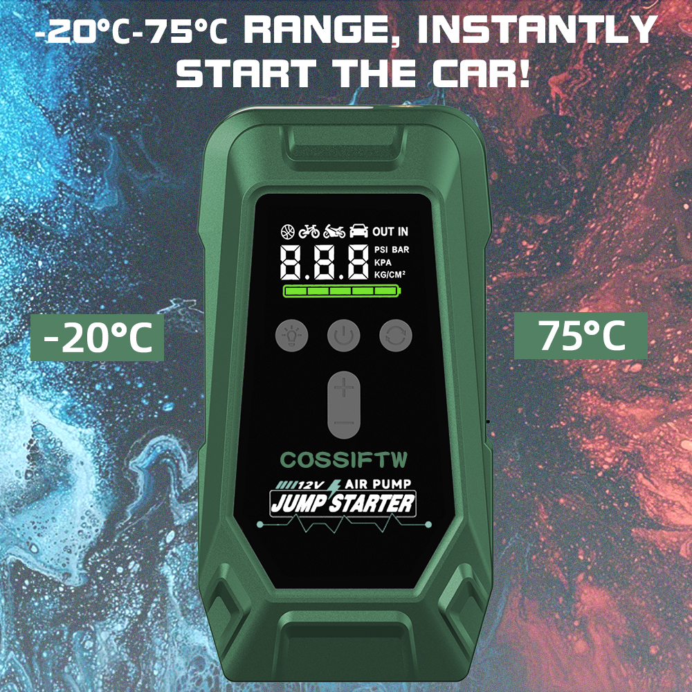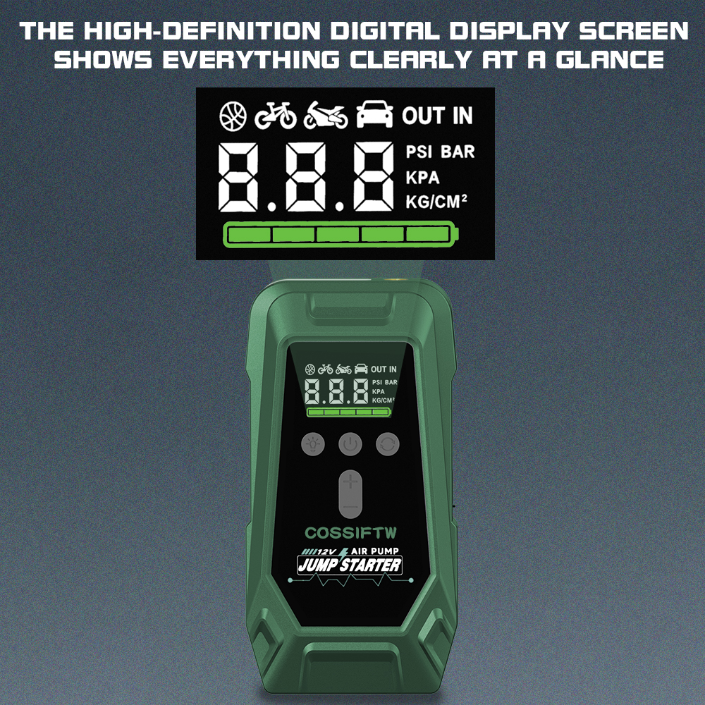 COSSIFTW电动无线数字显示便携式汽车充气泵轮胎充气机与跳跃起动器和移动电源