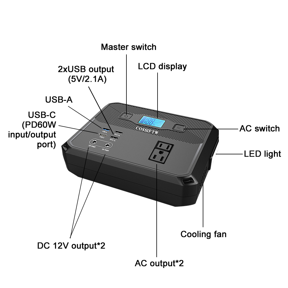 输出:2X直流输出9-12v/10a最大,2X USB输出5v/2.1a最大,1x快速充电3.0(4-9V2.1a)