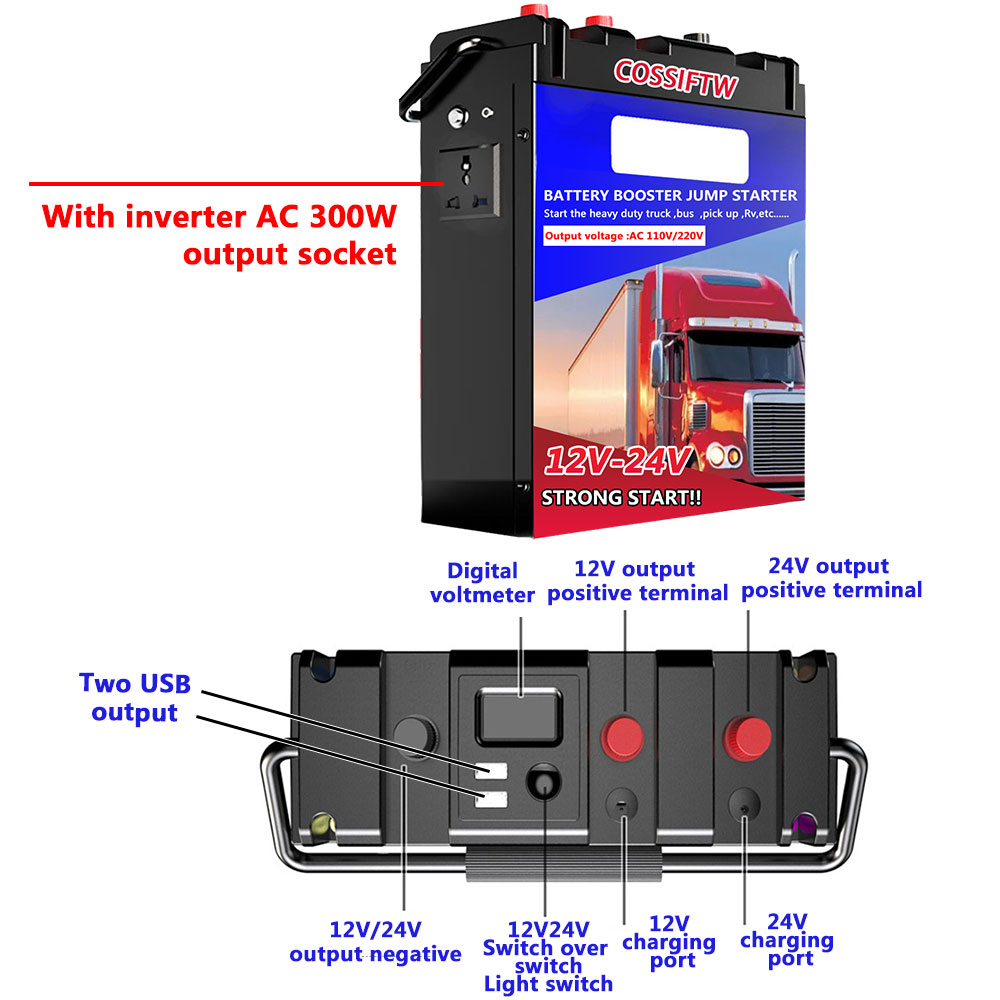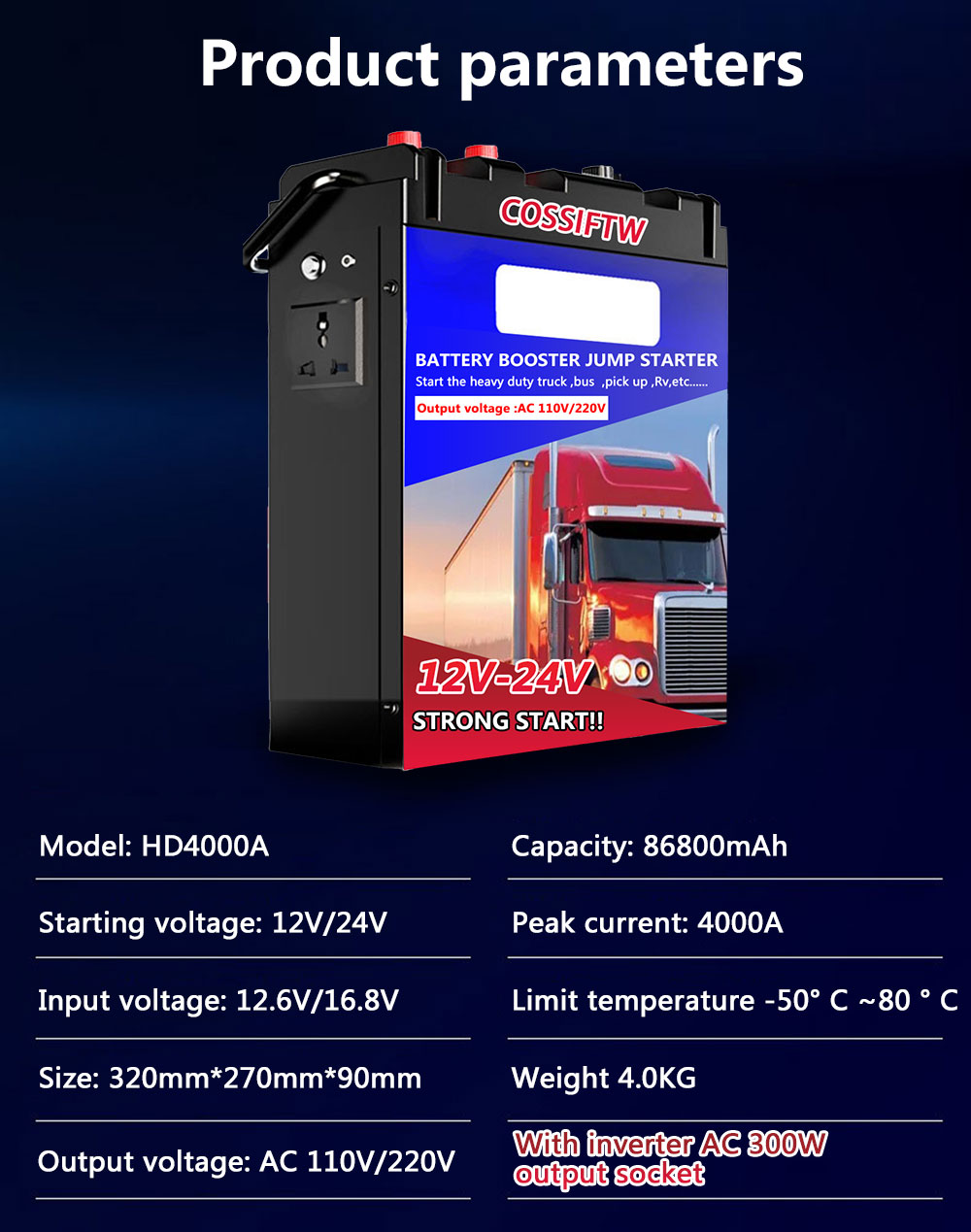 COSSIFTW OEM ODM12V/24V汽车卡车跳跃起动器便携式汽车电池助力器包4000A86800mah自动启动装置