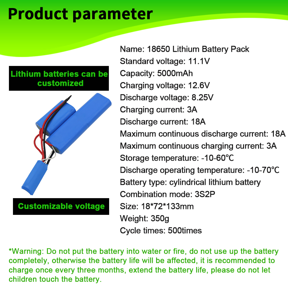 定制KC认证锂离子电池5000mah11.1v锂电池3s2p18650电池5000mah