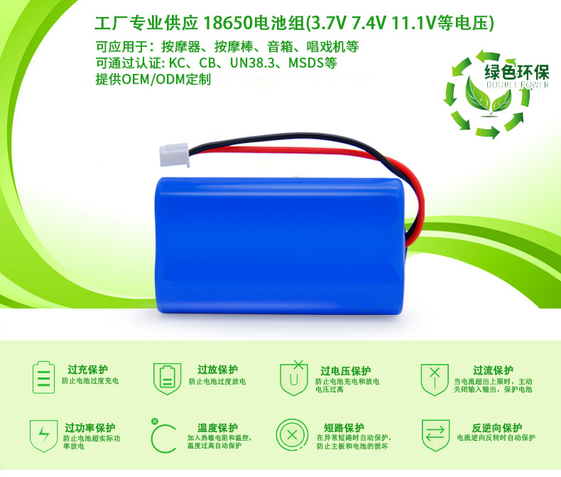 18650 7.4V 2200mAh 日本PSE认证 筋膜枪 按摩器锂电池组