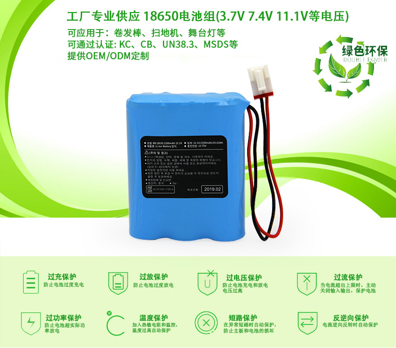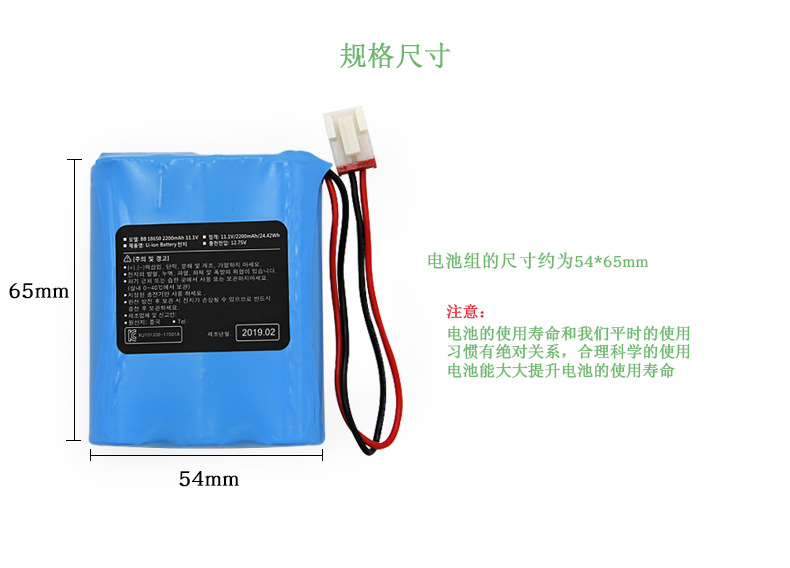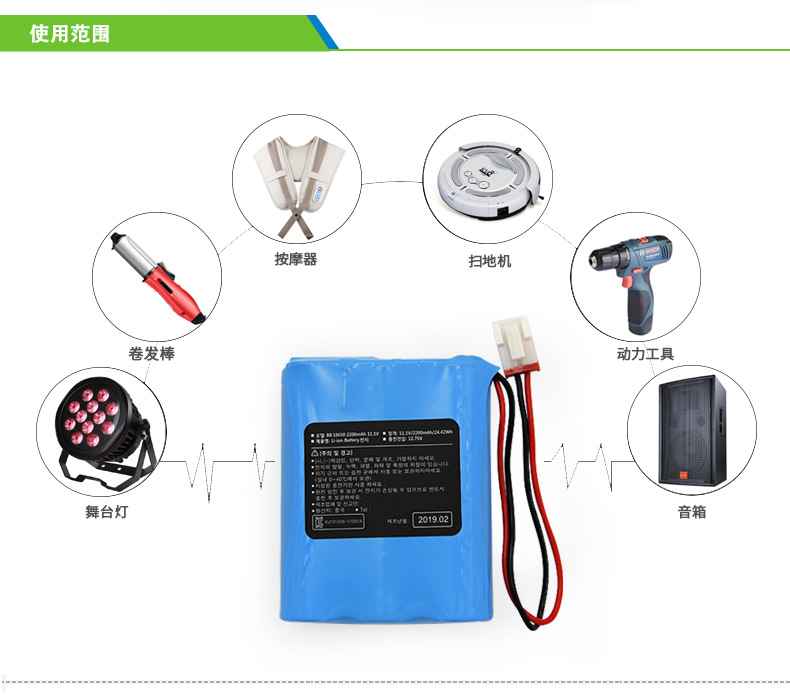 18650 11.1V 2200mAh 三元聚合物锂电池用于卷发棒 扫地机