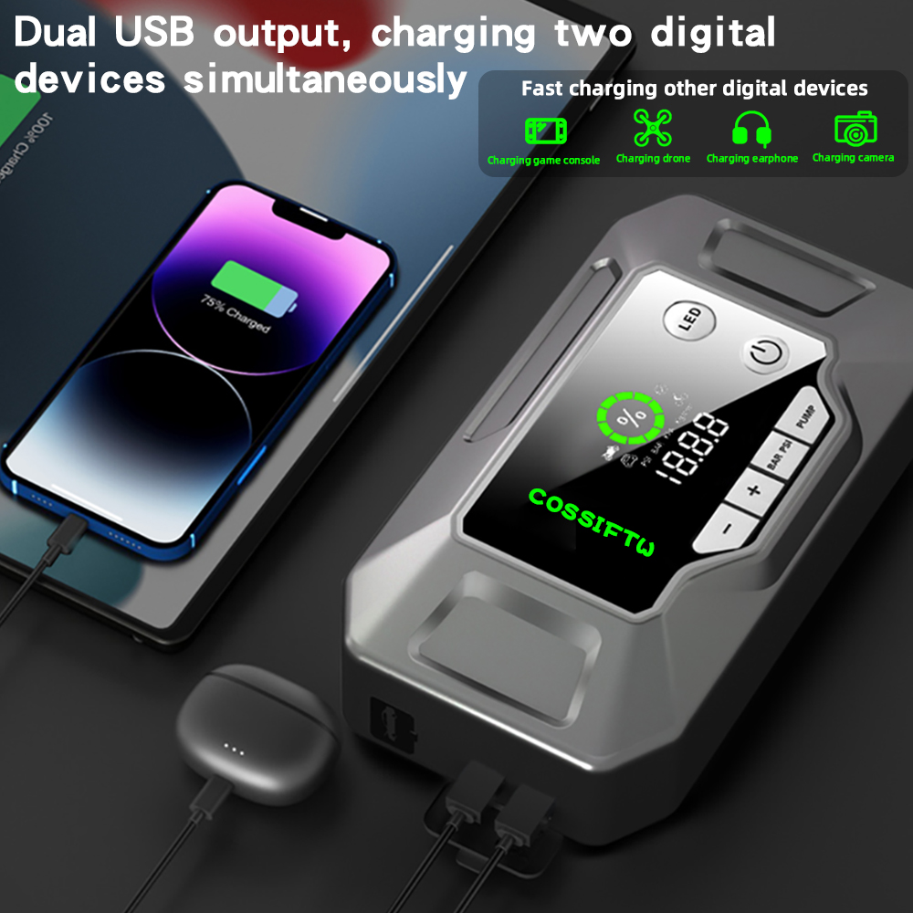 Portable 10000 mah super jumper battery pack car booster lithium power bank jump starter with air compressor