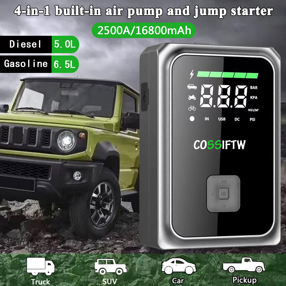 Portable 16800mah Car Battery Jump Starter High Capacity Car Booster Lithium Power Bank Jump Starter Pack With Tire Inflator