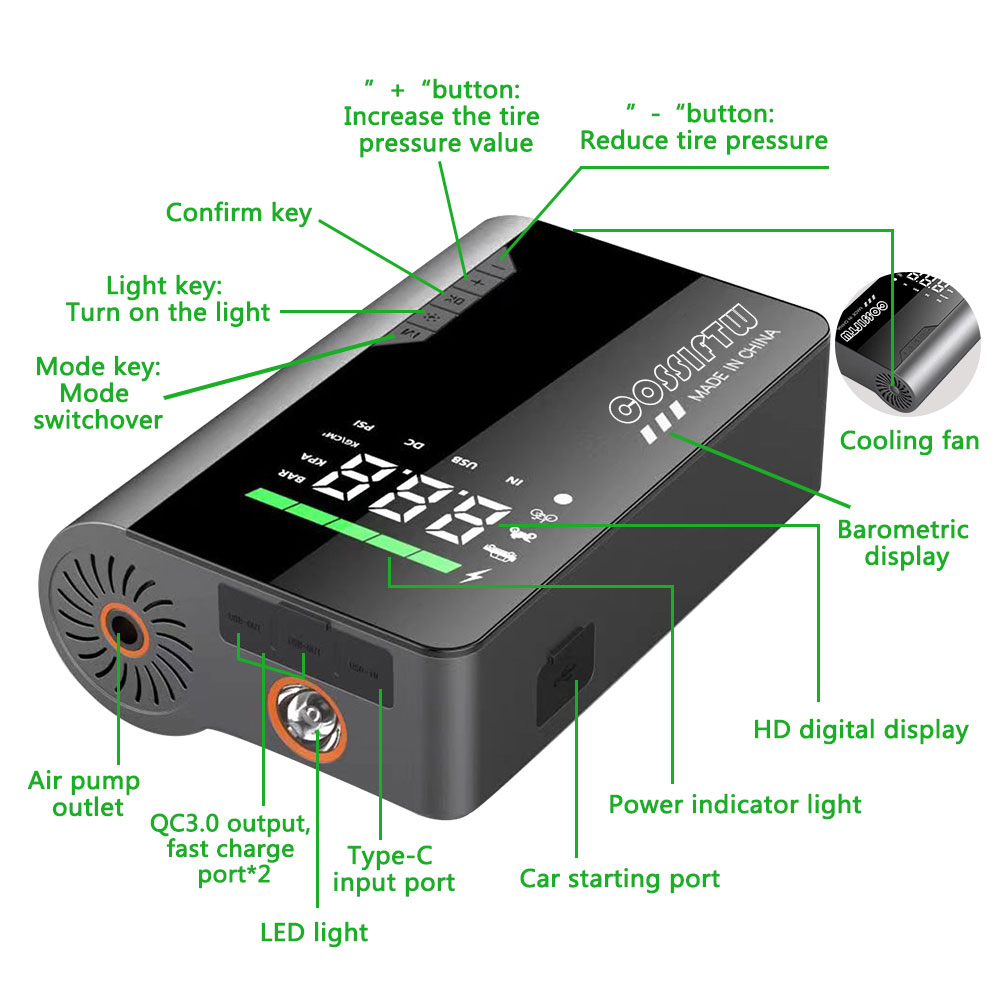 Current Position: Home » Products » car jump starter » jump starter built-in air pump