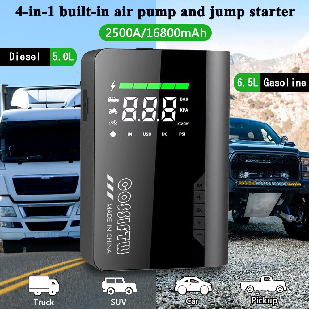 Hot Sale Peak 2500 A 16800mAh 4 in 1 built-in air pump and car jump starter
