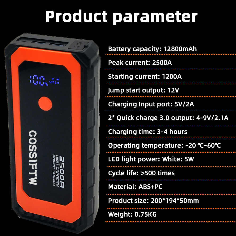 12800mAh 12V Car Jump Starter Power Bank Auto Battery Booster Emergency Tools Battery Pack
