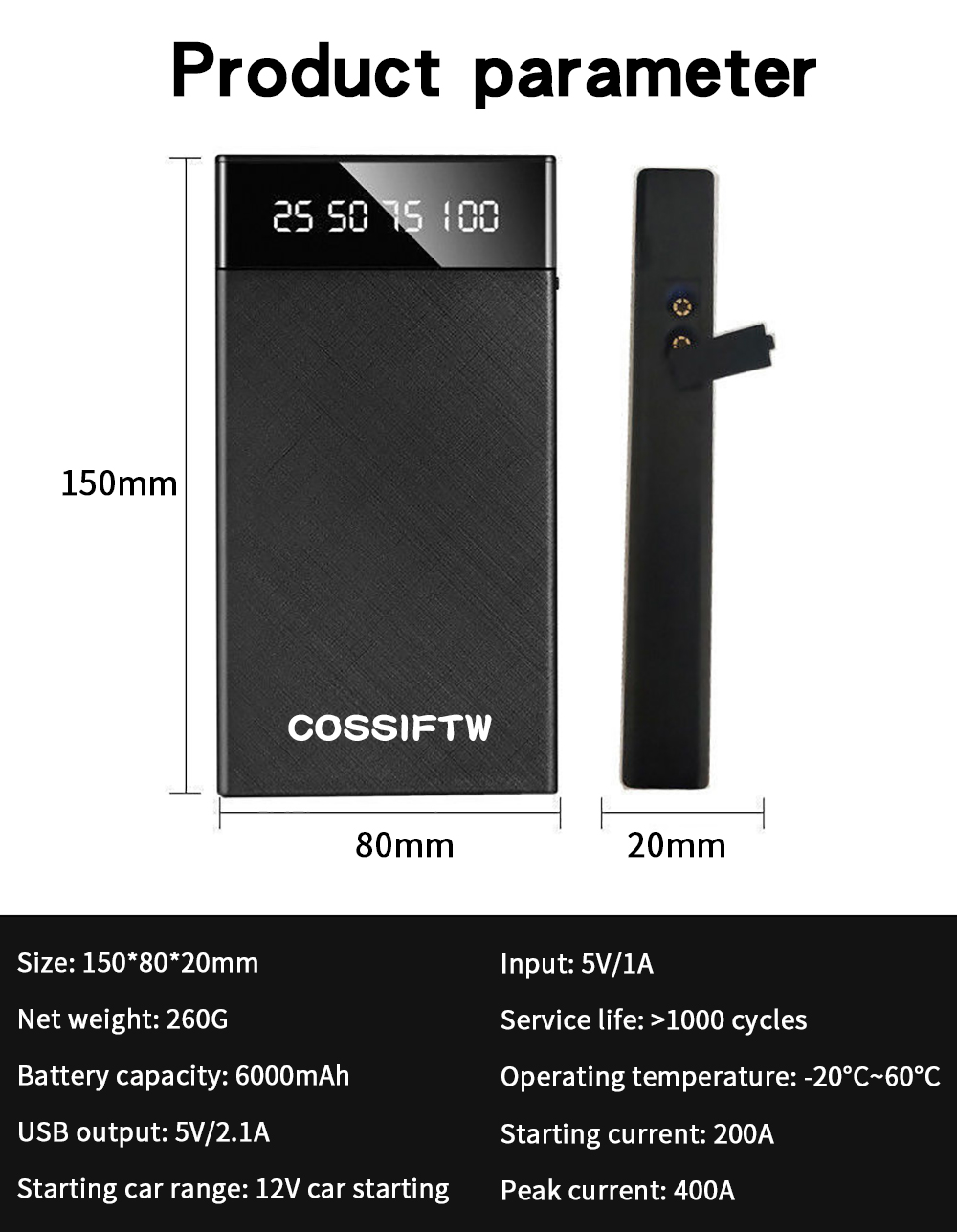 Mini Car Emergency Starting Power Source Mobile Power Source Car Charging Battery Charger 12V Start
