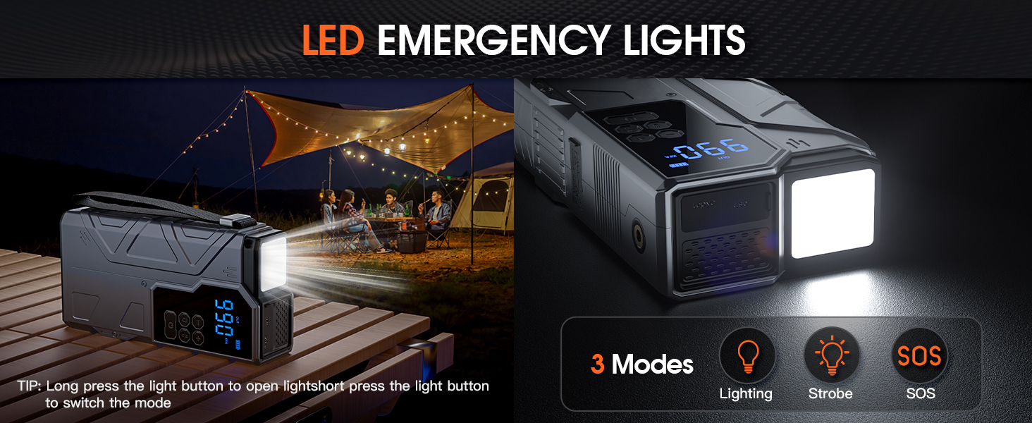 【LED Emergency Light & LCD Display】 -- With LED lighting function, lighting, flash and SOS 3 modes can be switched for the emergencies. LCD screen provides real-time data,make it clearer and easier to operate the machine
