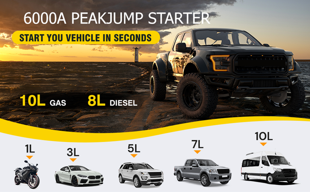 Powerful battery starter: RX017 car battery starter is designed for large-displacement vehicles (suitable for all gasoline and 10L gasoline/8L diesel).Super 6000A peak, can safely start SUVs, trucks, trucks, lawn mowers, snowmobilers, motorcycles, yachts and other vehicles