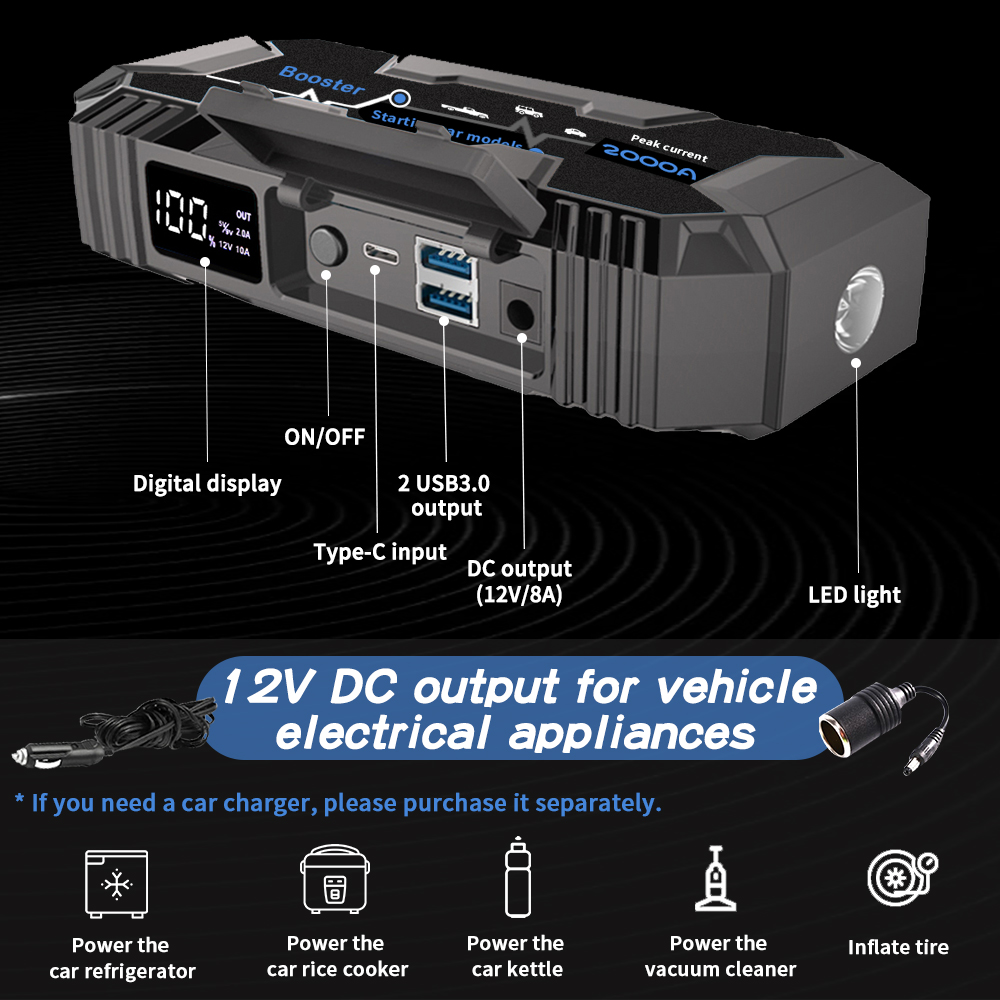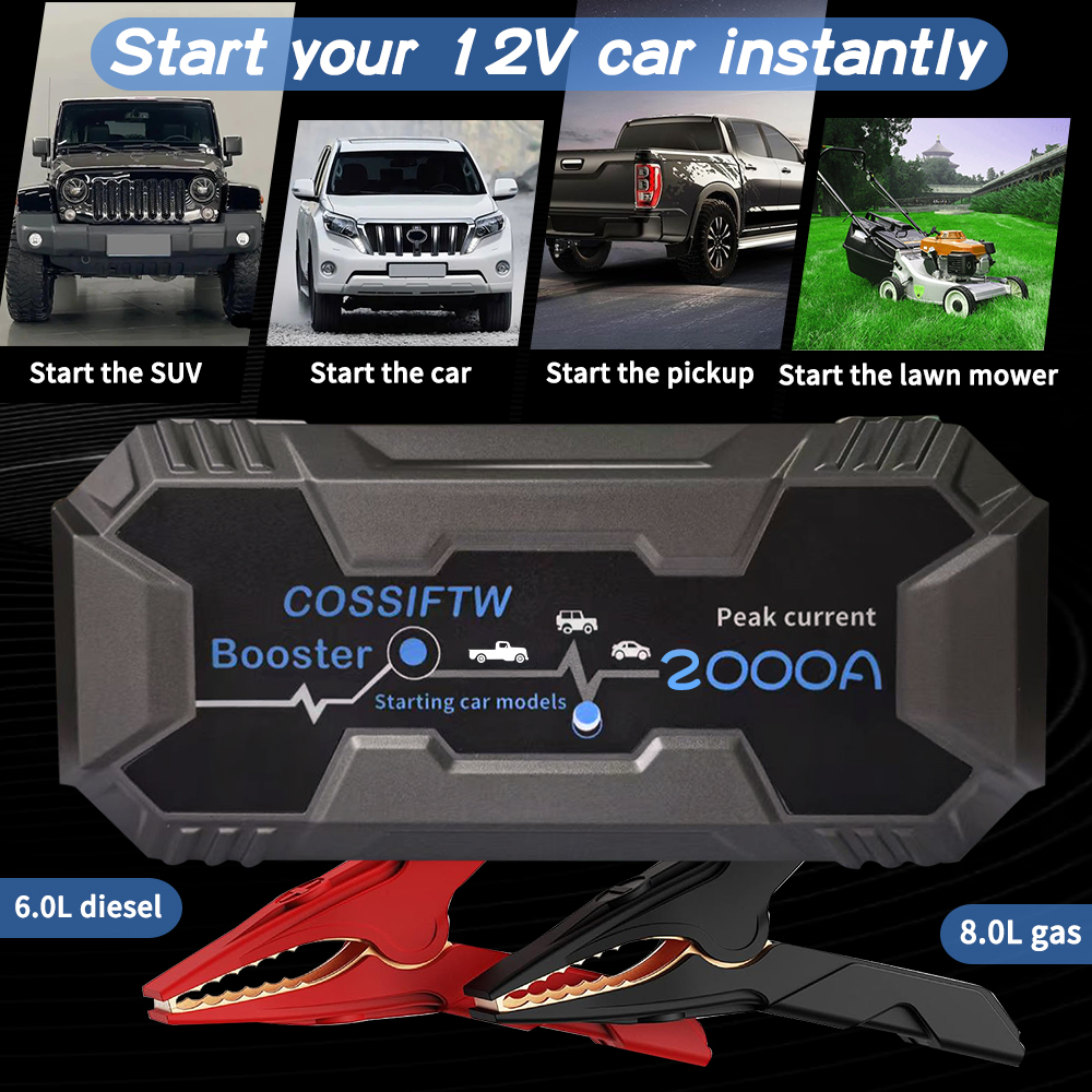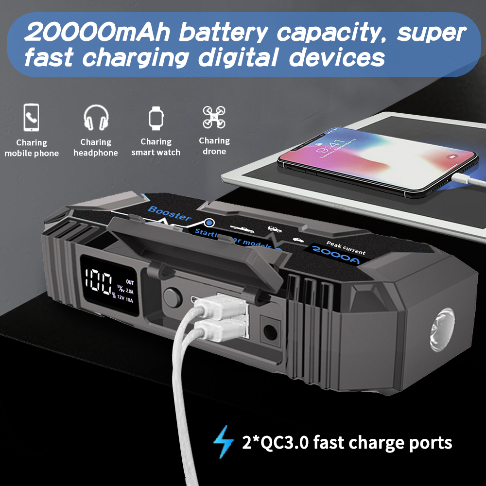 Jump Starter Power Pack 2000A Peak Portable Car Jump Starter Power Bank