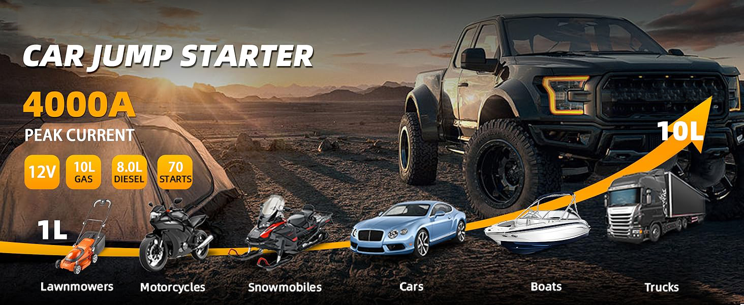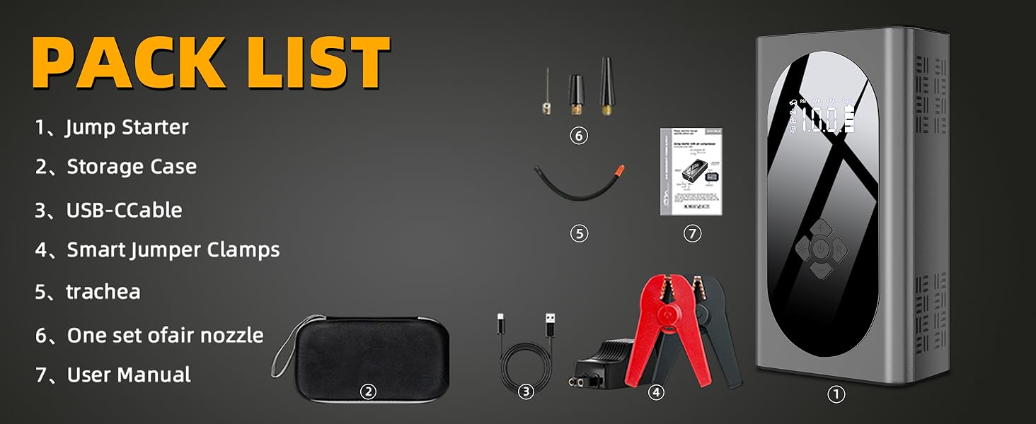 Multi-Function Power Bank with Jump Start and Air Pump USB Charger for Car 1000 Cycle Jump Box