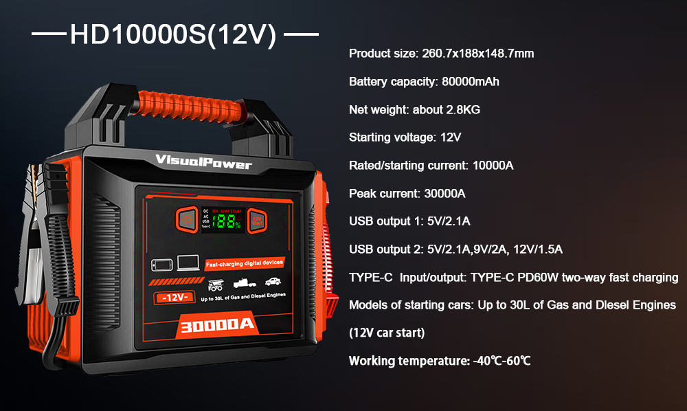Heavy Duty Truck Battery Booster Pack Jump Starter Pack Box 12v / 24v 30000 Amps