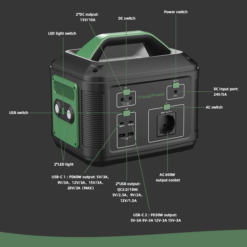 COSSIFTW 500w Output Lithium Battery Portable Power Station Pure Sine Wave Power Inverter for Camping