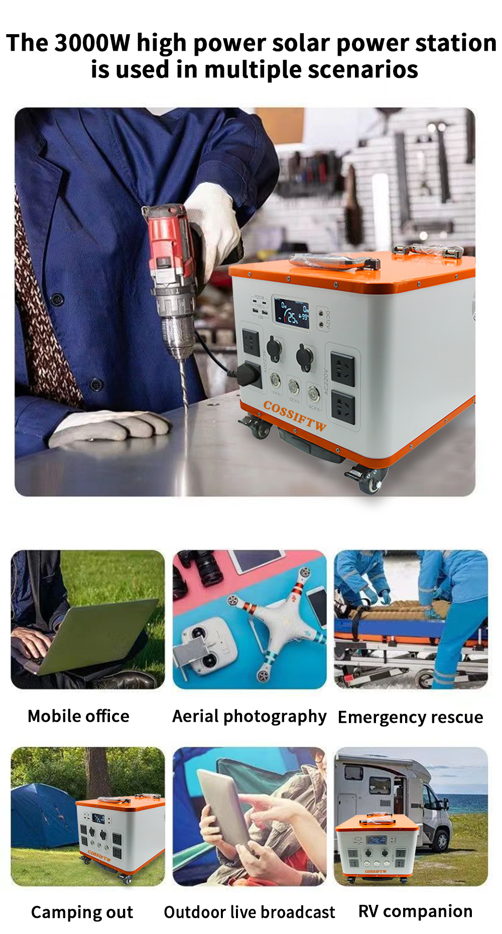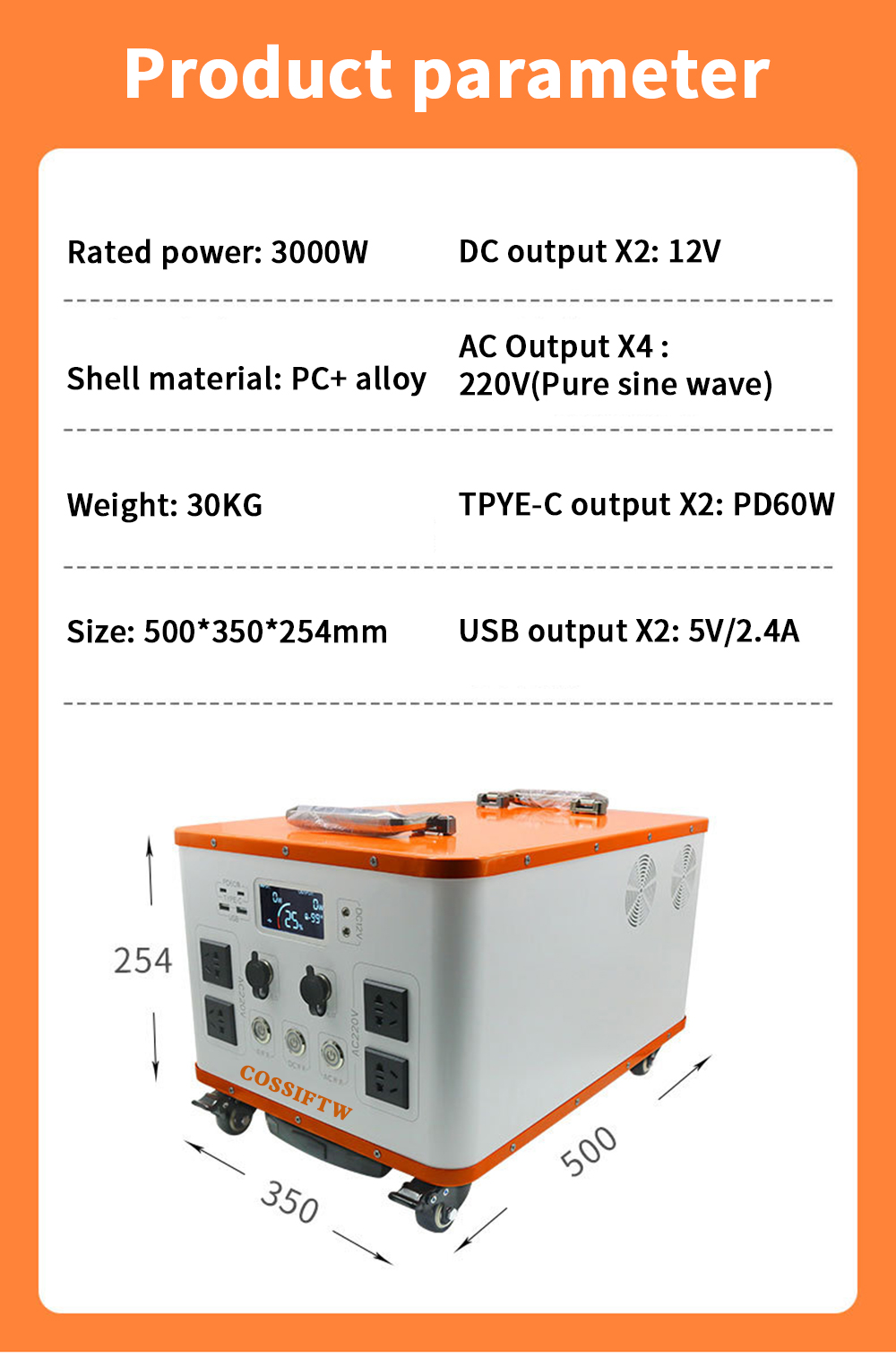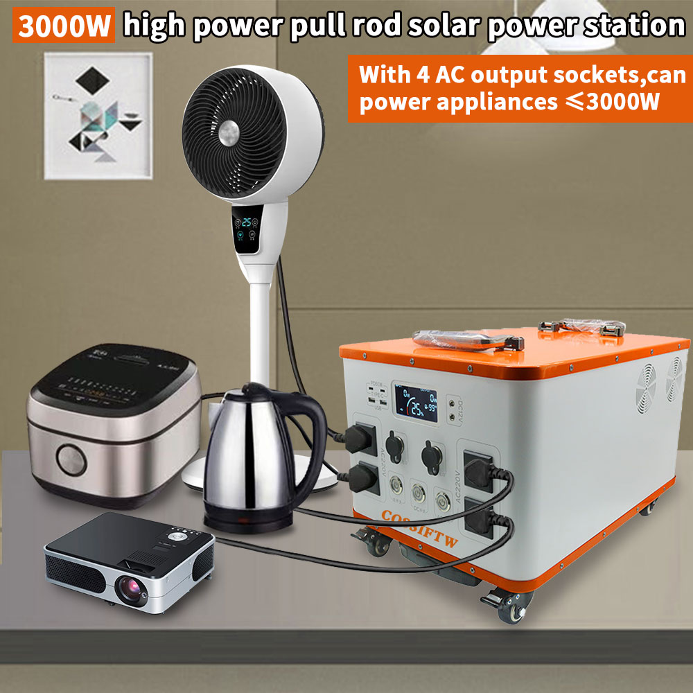220V Outdoor Movable Energy Storage Power Supply 3000w Solar Industrial Emergency Power Tie Rod Outdoor Power Supply