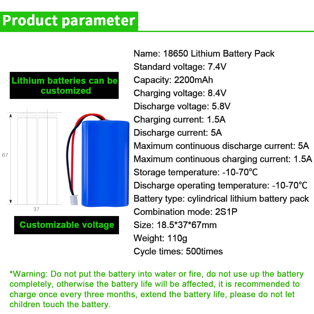 Rechargeable 2s1p 2200mah lithium ion battery pack li ion icr 18650 battery 2200mah 7.4v
