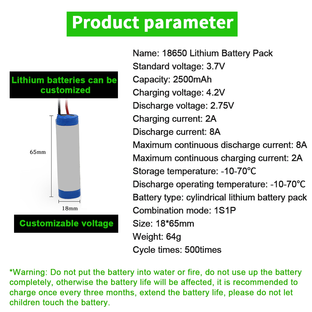 High Quality 1s1p Battery Pack With Ncr18650b 2500mah 3.7v Battery Cell Use For Flashlight